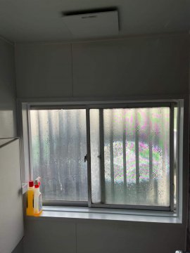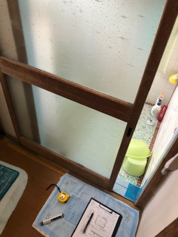 (浴室入口一面解体造作、クロス貼り、換気扇配線等、諸工事あり)