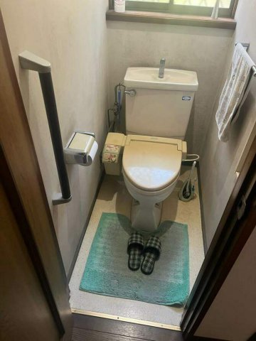 壁の幅や階段の角度に合わせ、ちょうど良いサイズに施工しました。トイレも、立ち上がりの際の補助として手すりを設置しました。