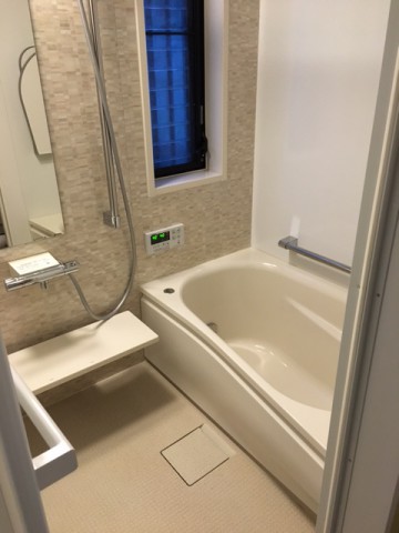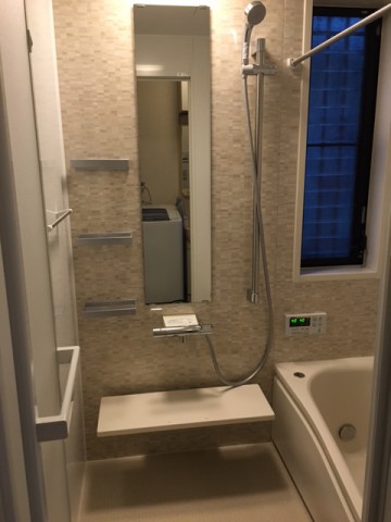 床やカウンター、浴槽も、雰囲気を併せてベージュ系でまとめられました。