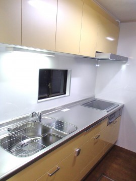 扉の色はスムースイエロー。派手すぎない明るい色味のキッチンになりました!