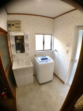 脱衣室は全面クロスを張替え、洗面化粧台も交換。