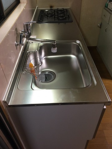 キッチンパネルや水栓、換気扇、キャビネットはそのままで