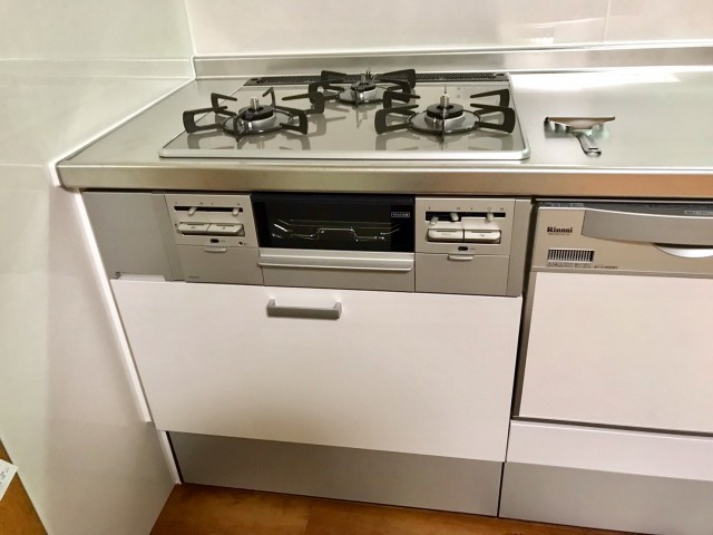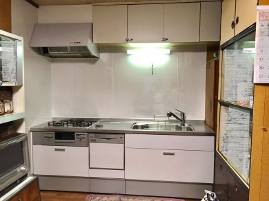 上キャビネット(天井付きの棚)とレンジフードはきれいだったので既存のものを活用しました!