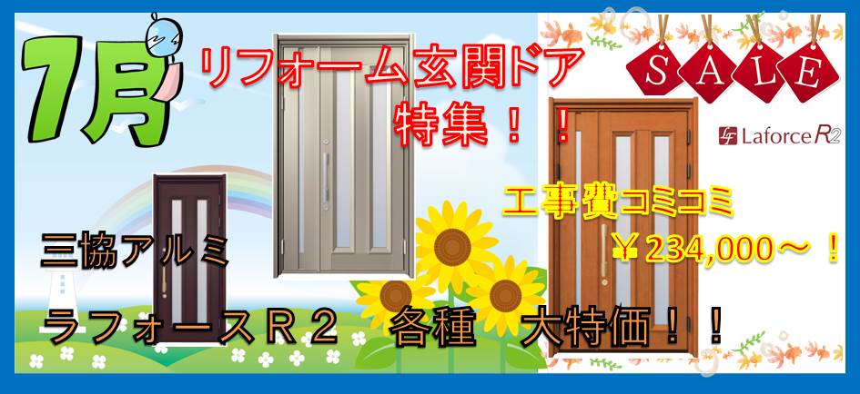 7月は玄関ドアを特別価格でご提供!!この機会にぜひご検討下さい!!
