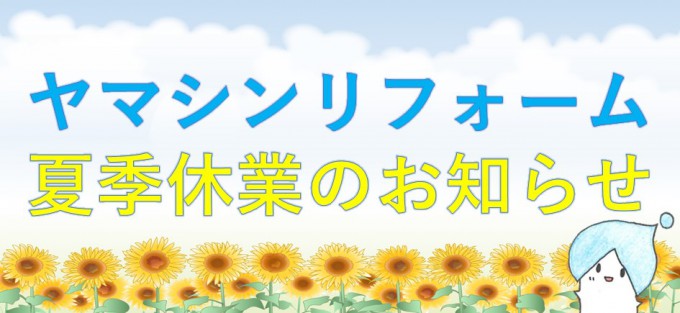 ヤマシンリフォームの夏季休業は次の通りとなっております。