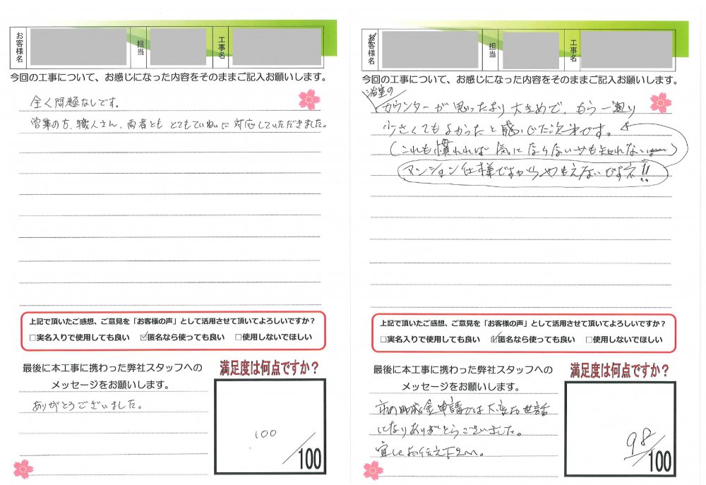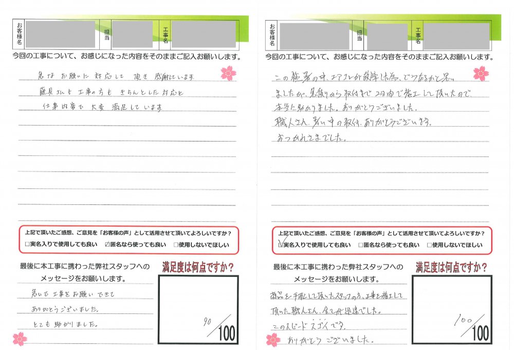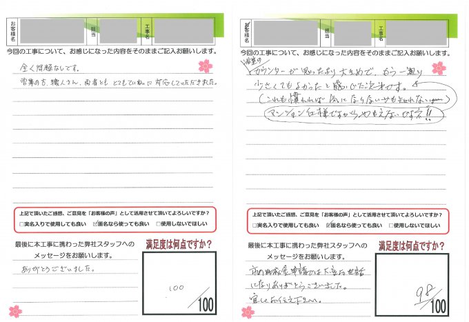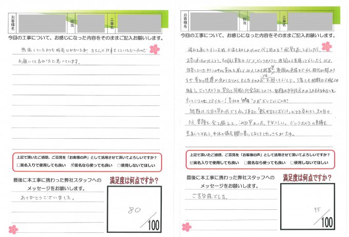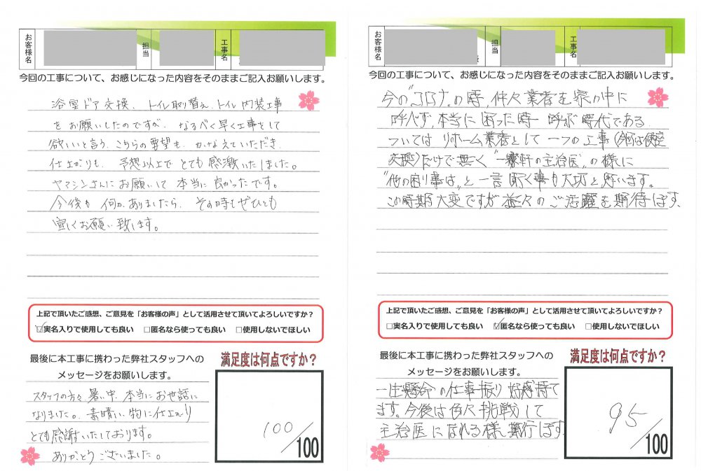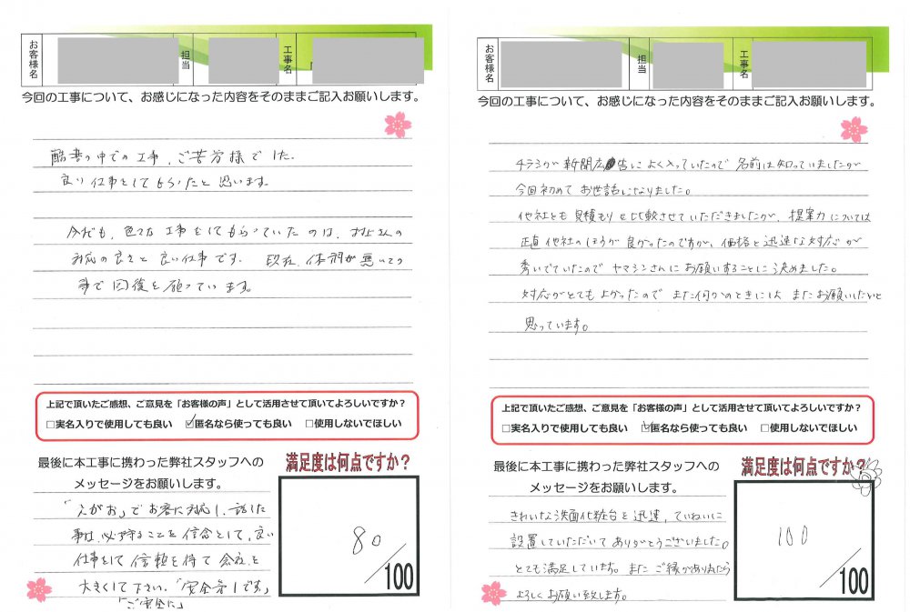 ヤマシンリフォームでは工事完了後