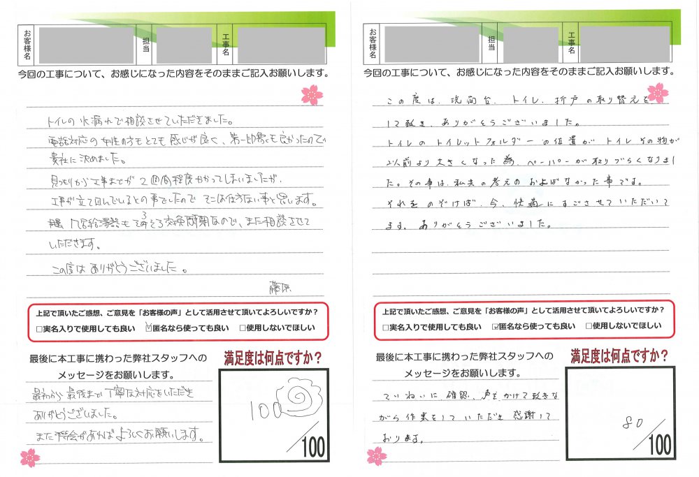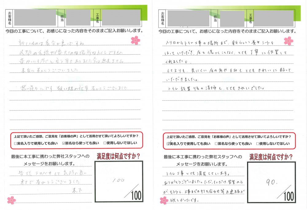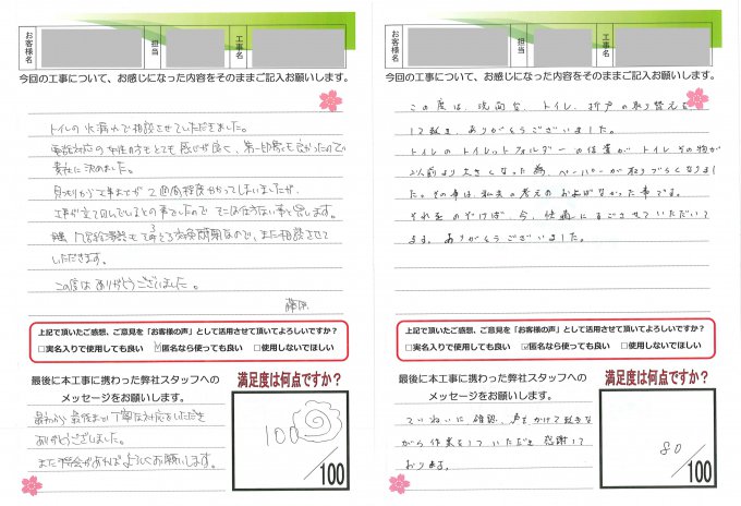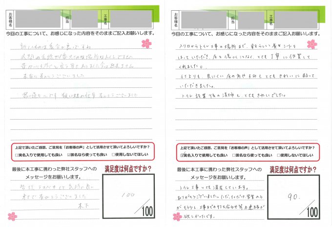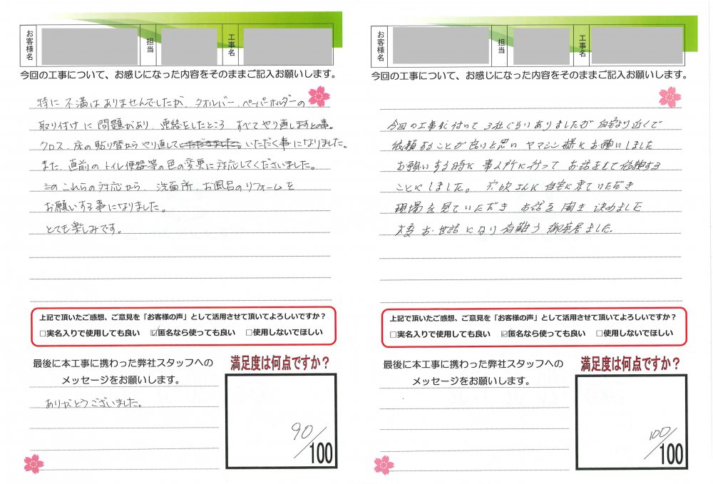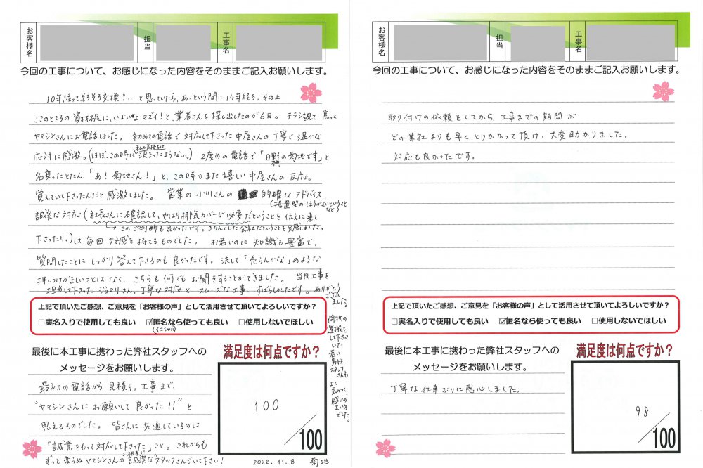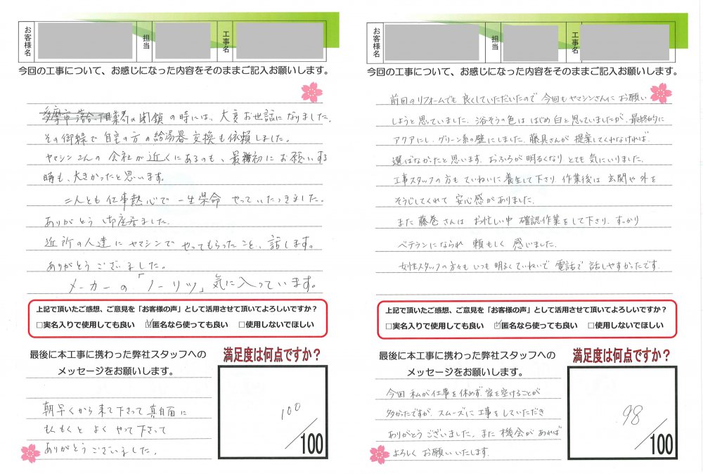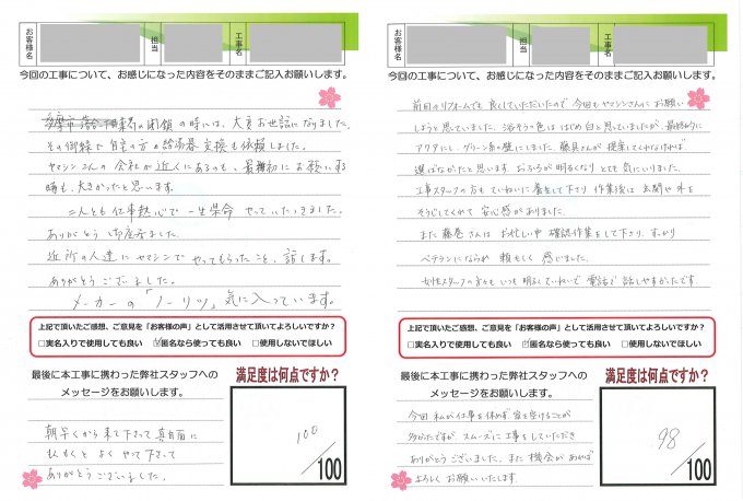 ヤマシンリフォームでは工事完了後