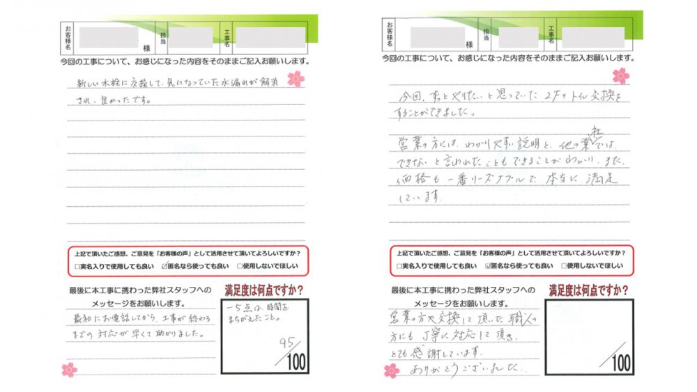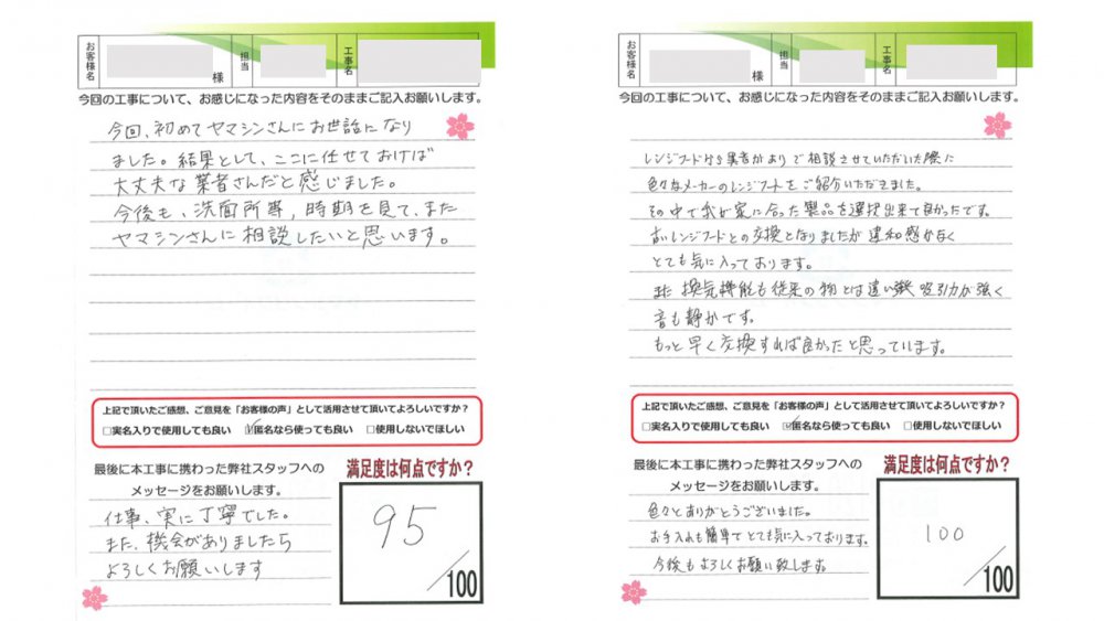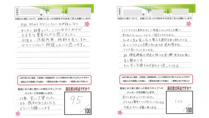 ヤマシンリフォームでは工事完了後